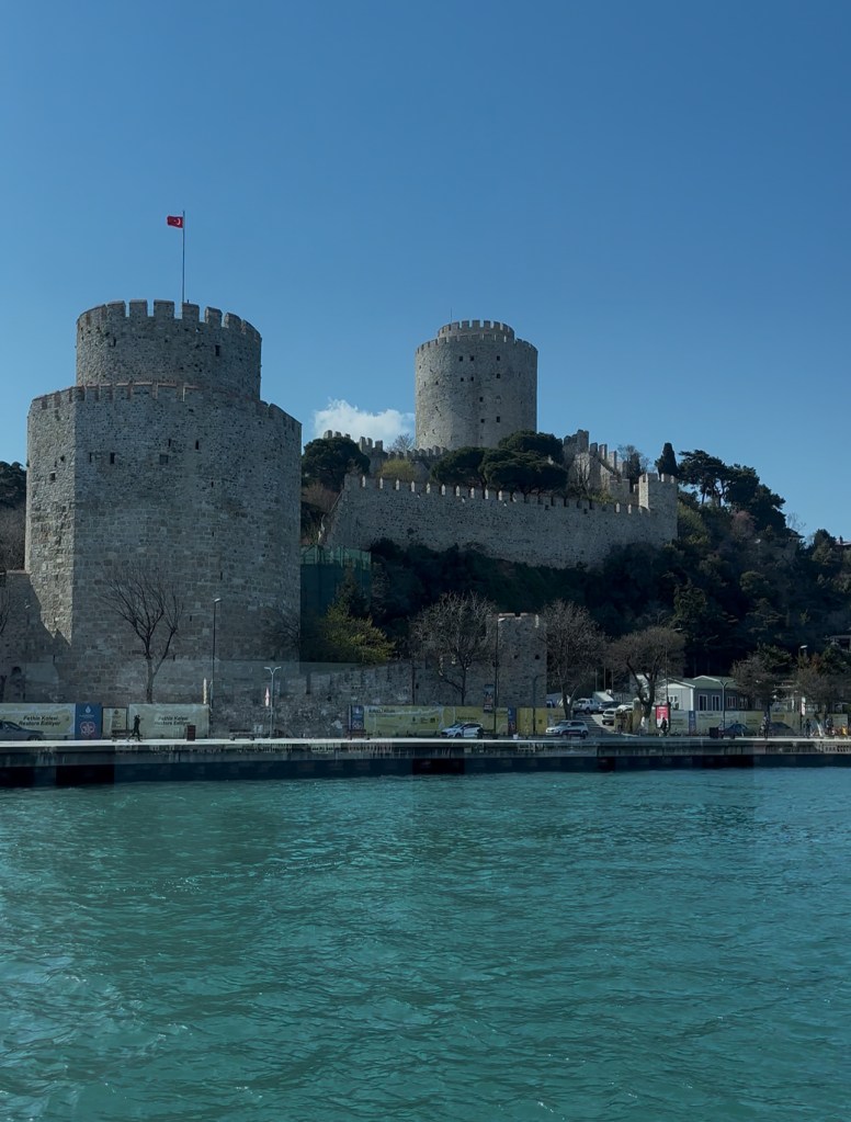 I noticed a medieval looking fortress on the European shore and, consulting the map on my phone, identified it as Rumeli Hisarı. This formidable structure was built by Ottoman Sultan Mehmed II in just four months during 1452, in preparation for his conquest of Constantinople. Its strategic position at the narrowest point of the Bosphorus allowed the Ottomans to control sea traffic, a critical advantage in the eventual fall of the Byzantine capital.