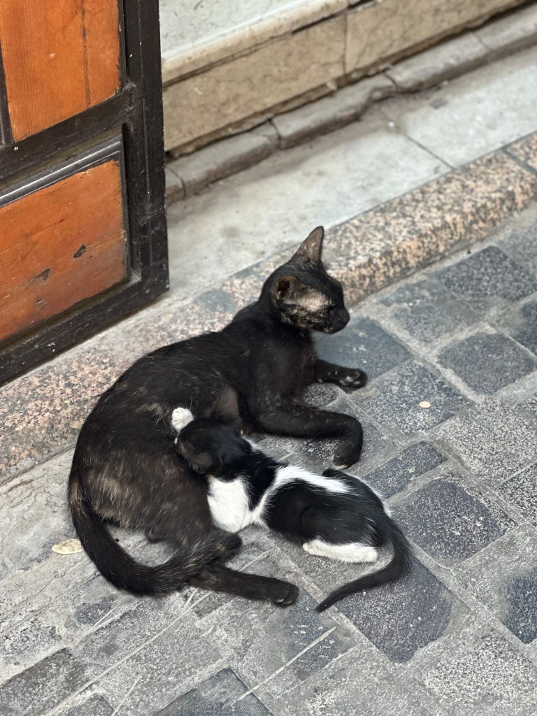 The empty streets made sense. No one visits Al-Balad in the heat of the day. The spice shops remained shuttered, the gold souk quiet. A few cats moved about, lounging in shadows or catching the cool air drifting from the few open shops.
